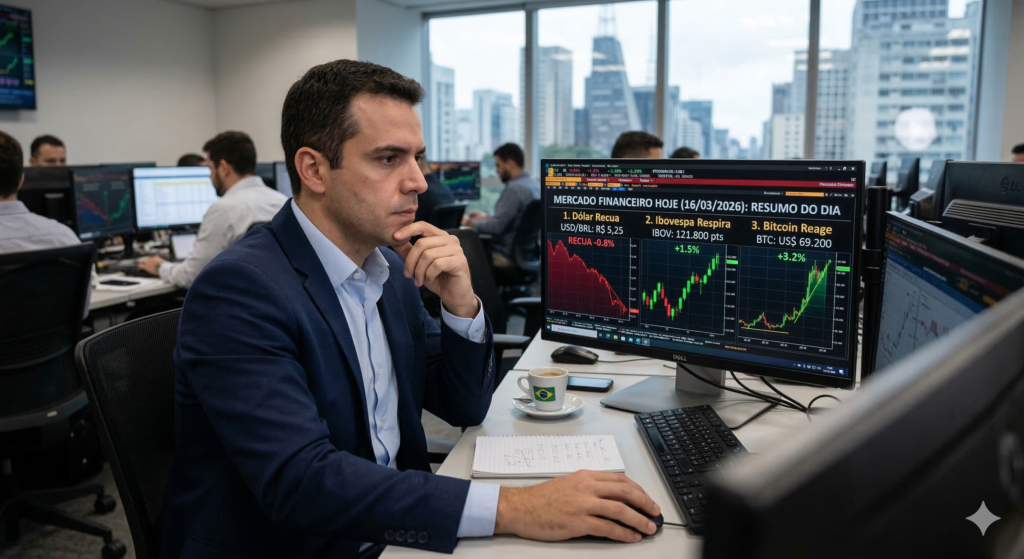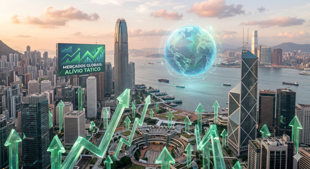 O humor do mercado financeiro hoje foi inteiramente ditado por uma drástica reversão de expectativas geopolíticas. Após um fim de semana de extrema tensão, o anúncio do presidente dos Estados Unidos de uma suspensão de cinco dias nos ataques a bases petrolíferas iranianas trouxe um choque de alívio aos investidores.