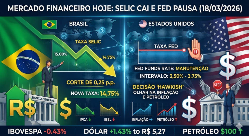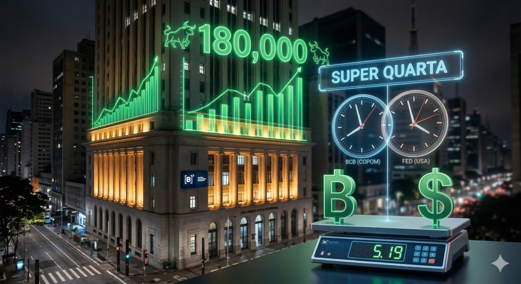 - Dados de Emprego e Inflação nos EUA: O Federal Reserve (Fed) baseia seus próximos passos na economia real; dados aquecidos podem adiar ainda mais a queda de juros por lá.