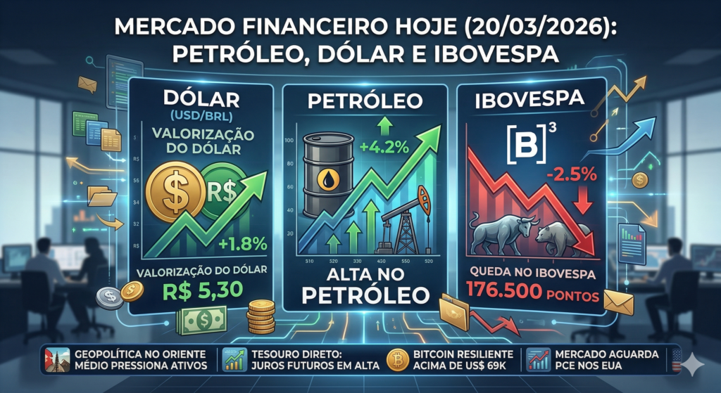 O alívio externo fez o dólar comercial fechar em queda de 1,29%, cotado a R$ 5,240. A trégua no petróleo diminui a pressão global por dólares (busca por refúgio), favorecendo moedas emergentes como o real.